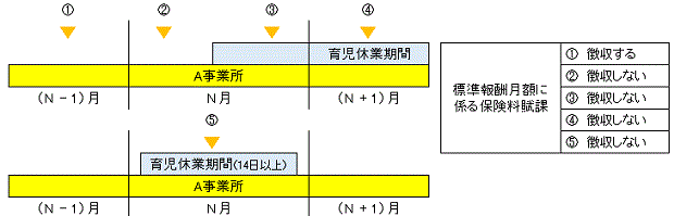 育児休業等期間中の保険料徴収パターン(令和4年10月1日以降に開始する育児休業等から適用)